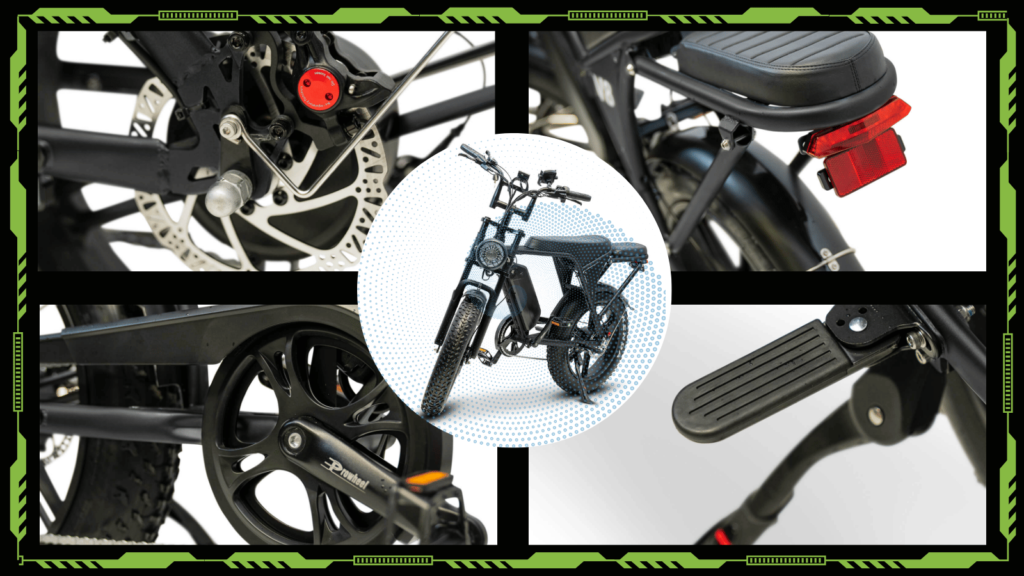 De fatbike is voorzien van een helder rood remlicht, dat een duidelijk signaal geeft bij het remmen. Daarnaast beschikt de fatbike over richtingaanwijzers, waarmee je de richting in het verkeer kunt aangeven, wat je veiligheid en zichtbaarheid op de weg vergroot.